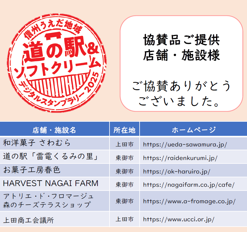「信州うえだ地域道の駅&ソフトクリームデジタルスタンプラリー2025」について、多くの皆様にご参加いただき、ありがとうございました!